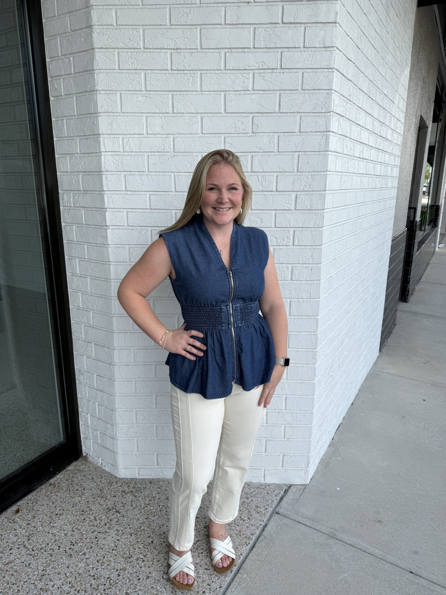 Effortlessly chic and oh-so-flattering, the Bitsy Top is a modern twist on classic denim. Designed with a structured zip front, smocked waistline, and subtle peplum hem, it creates a beautifully feminine silhouette that pairs perfectly with your favorite trousers or skirts.
