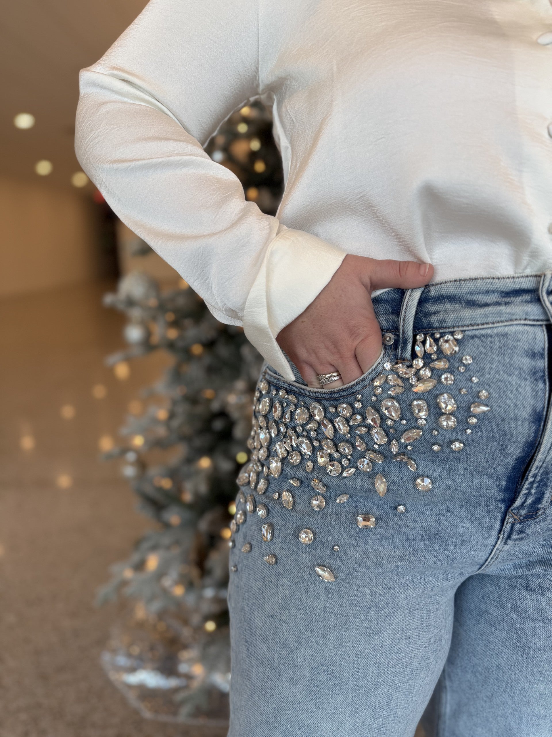 Fiona high rise jean adds a touch of sparkle to your wardrobe.