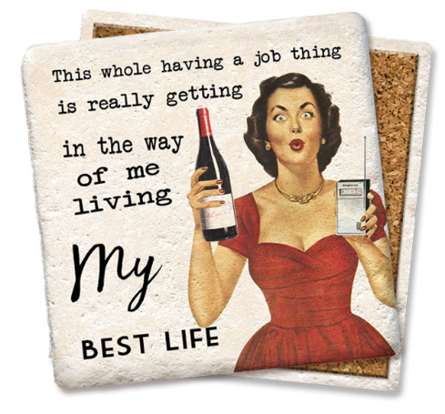 Coasters are a funny and functional addition to any home bar! Be ready to hear your friends laughing out loud at Tipsy Coasters! These drink coasters bring humor and delight to parties and get togethers. Plus, our funny drink coasters protect your tables and countertops from wine and beer stains. They are 100% absorbent natural stone - condensation disappears on contact! Coasters have a full cork backing that won't slip and protects your surfaces from scratches. Tipsy Coasters are the best quality handmade in USA and are all natural and environmentally friendly. No plastics or resins! Coasters are permanently UV printed and won't fade or wash off.